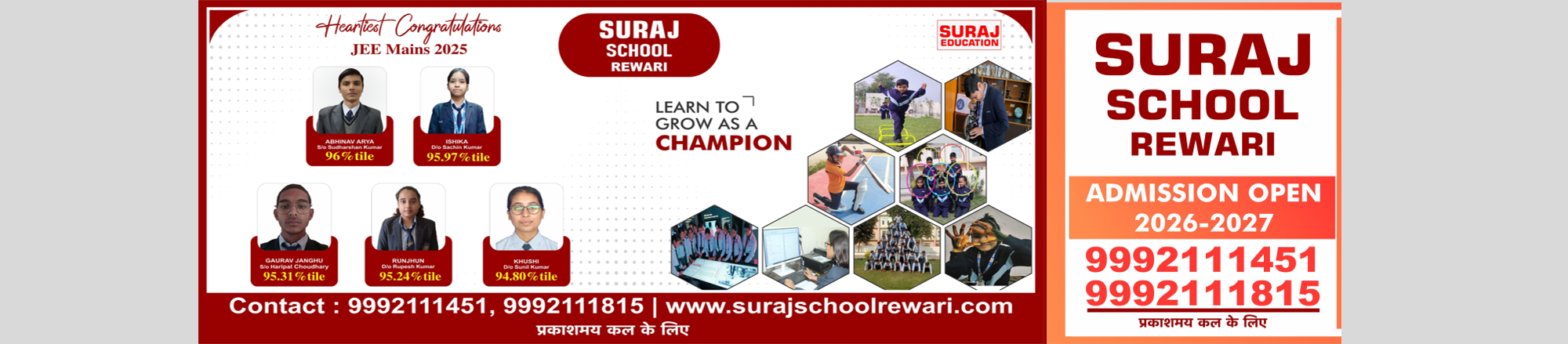 For over 25 years, Suraj School has been a trusted symbol of meaningful learning and holistic growth. Established in 1998, the Suraj Group of Schools has evolved into one of Haryana's leading educational institutions, empowering more than 36,000 students across 8 campuses with knowledge, confidence, and character.